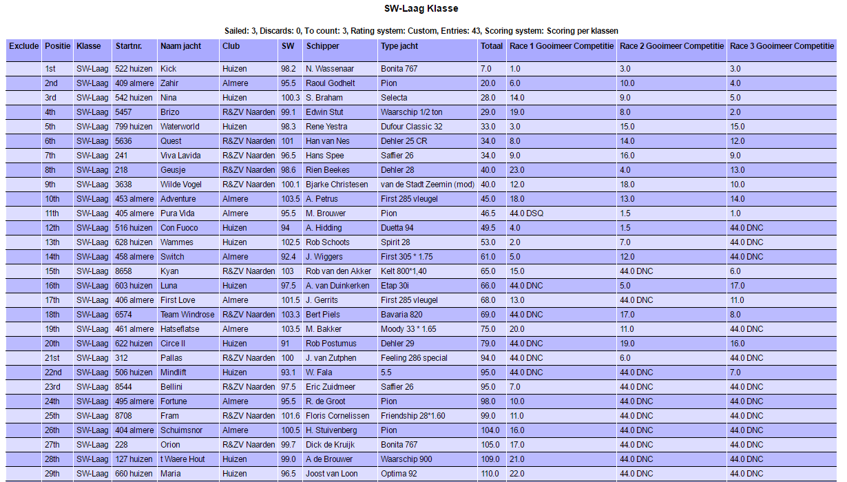 Na een serie van 4 wedstrijden, waarbij de laatste helaas door gebrek aan wind werd afgeblazen, bleek de Kick de snelste van het Gooimeer in de SW-L klasse.